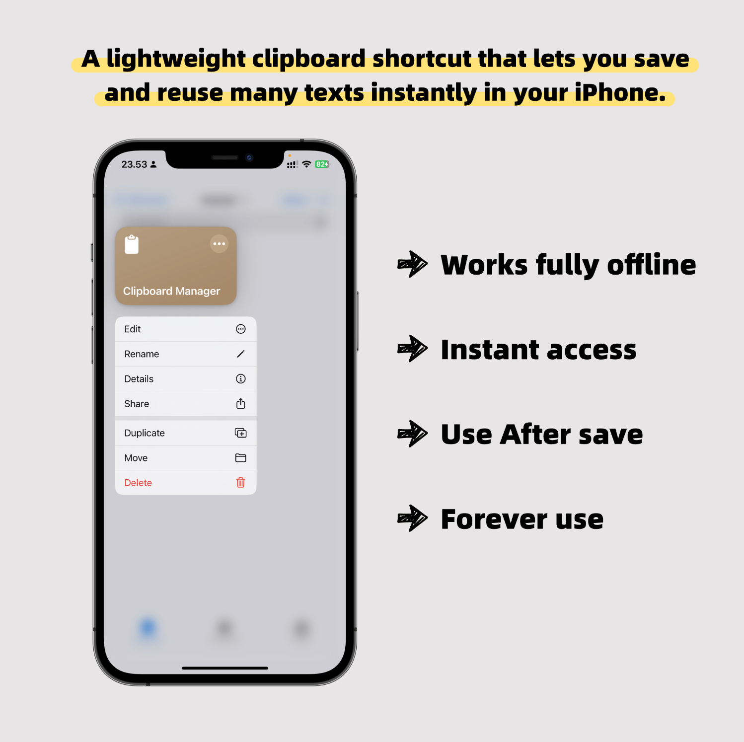 A lightweight clipboard shortcuts that lets you save and reuse text instantly in your iPhone/iPad/Mac.